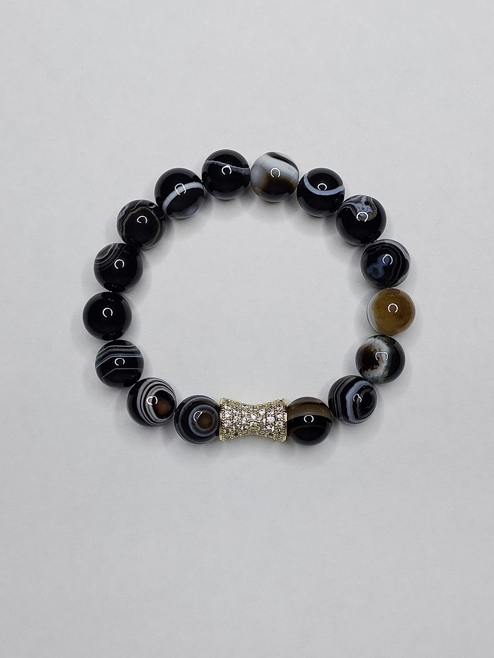 Браслет із намистин смугастого агату. Зоблений з намистин натурального каміння. Діаметр намистин Агату 10 мм. Намистини браслета зібрані на еластичну нитку