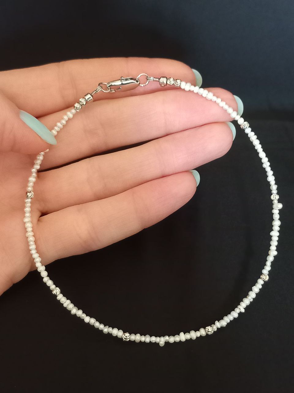 Браслет на ногу з перлів. Браслет зроблений з намистин натуральних річкових перлин.