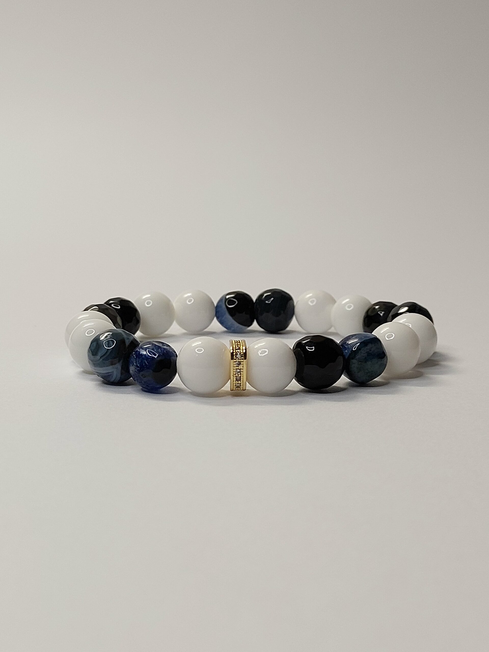 Браслет з білого та синього агату, фурнітура MILANO LUX