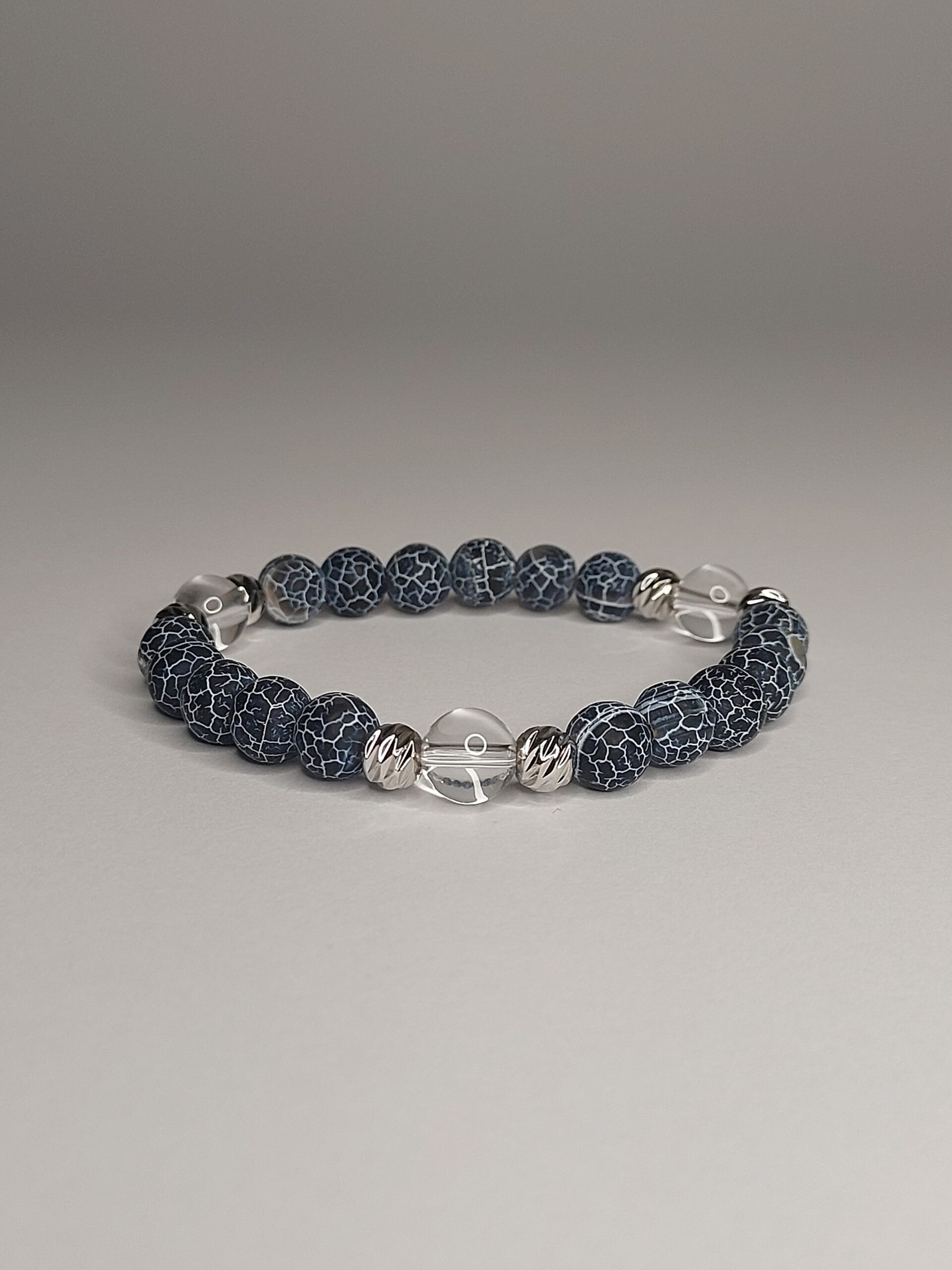 Браслет зроблений з намистин натурального чорного морозного агату та гірського кришталю.