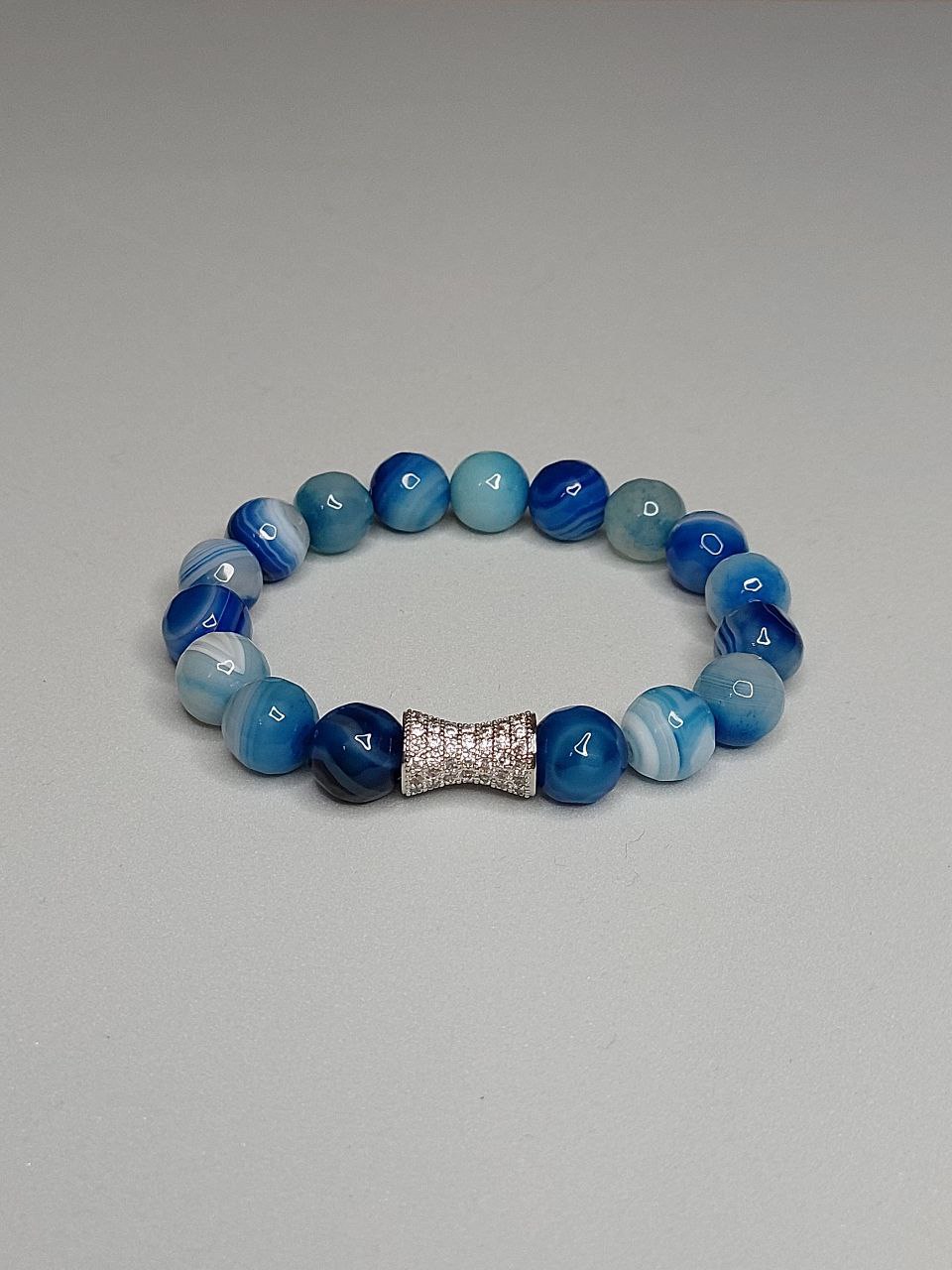Браслет з гранованого агату, зроблений з намистин натурального каміння. Діаметр намистин синього Агата 10 мм.