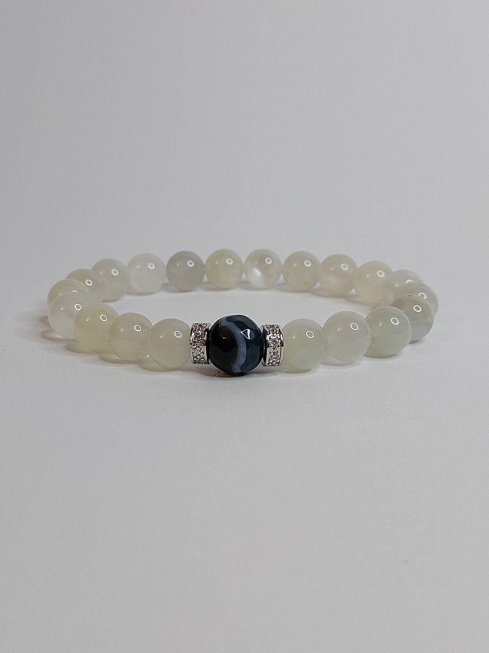 Браслет із місячного каміння та синього агату. Браслет зроблений з намистин натурального каміння.