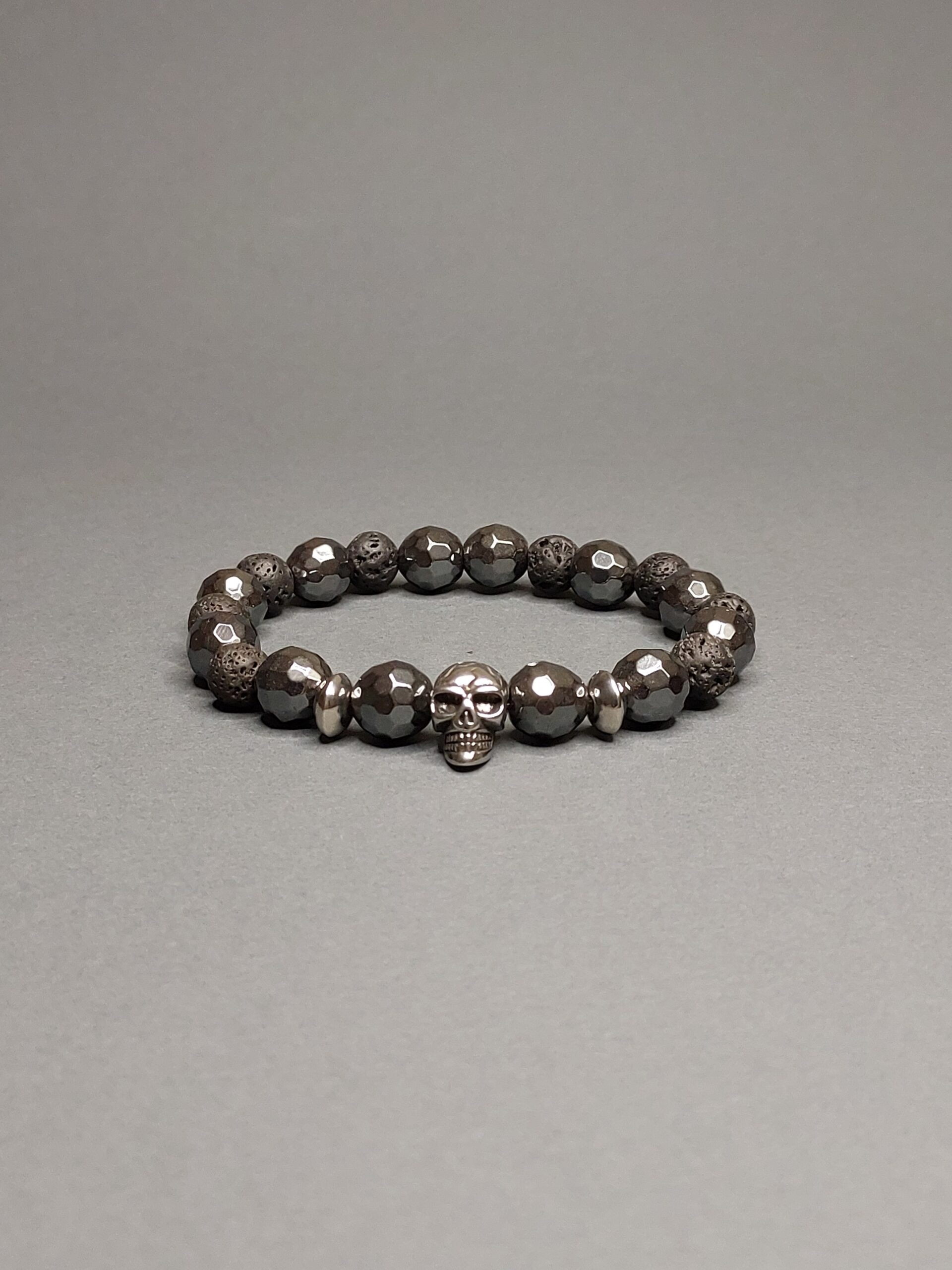 Браслет з натурального гранованого гематиту та лави з Черепом