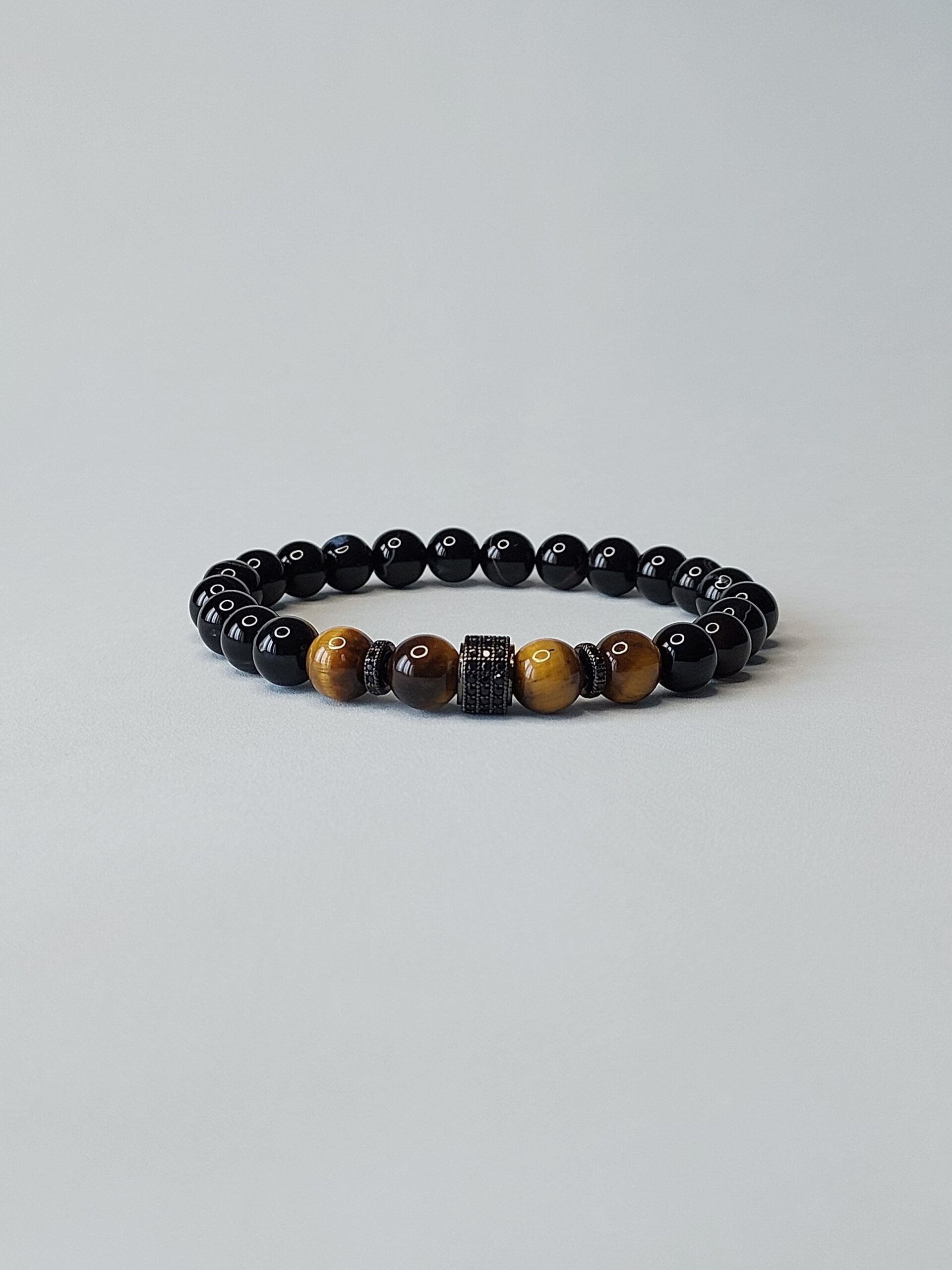 Браслет зроблений з намистин натурального каміння тигрове око та агату.