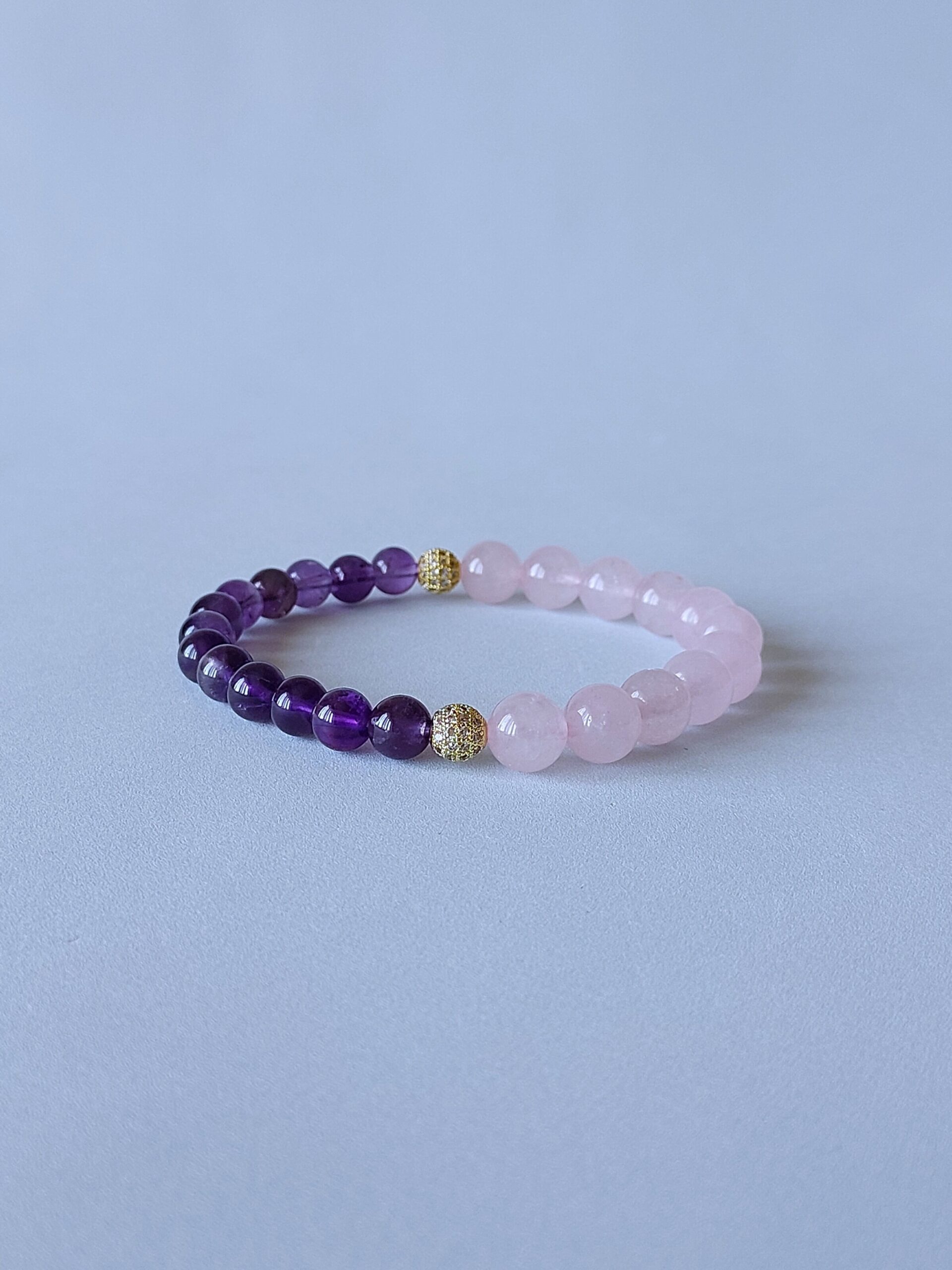 Браслет зроблений з намистин натурального каміння рожевий кварц та Аметист.