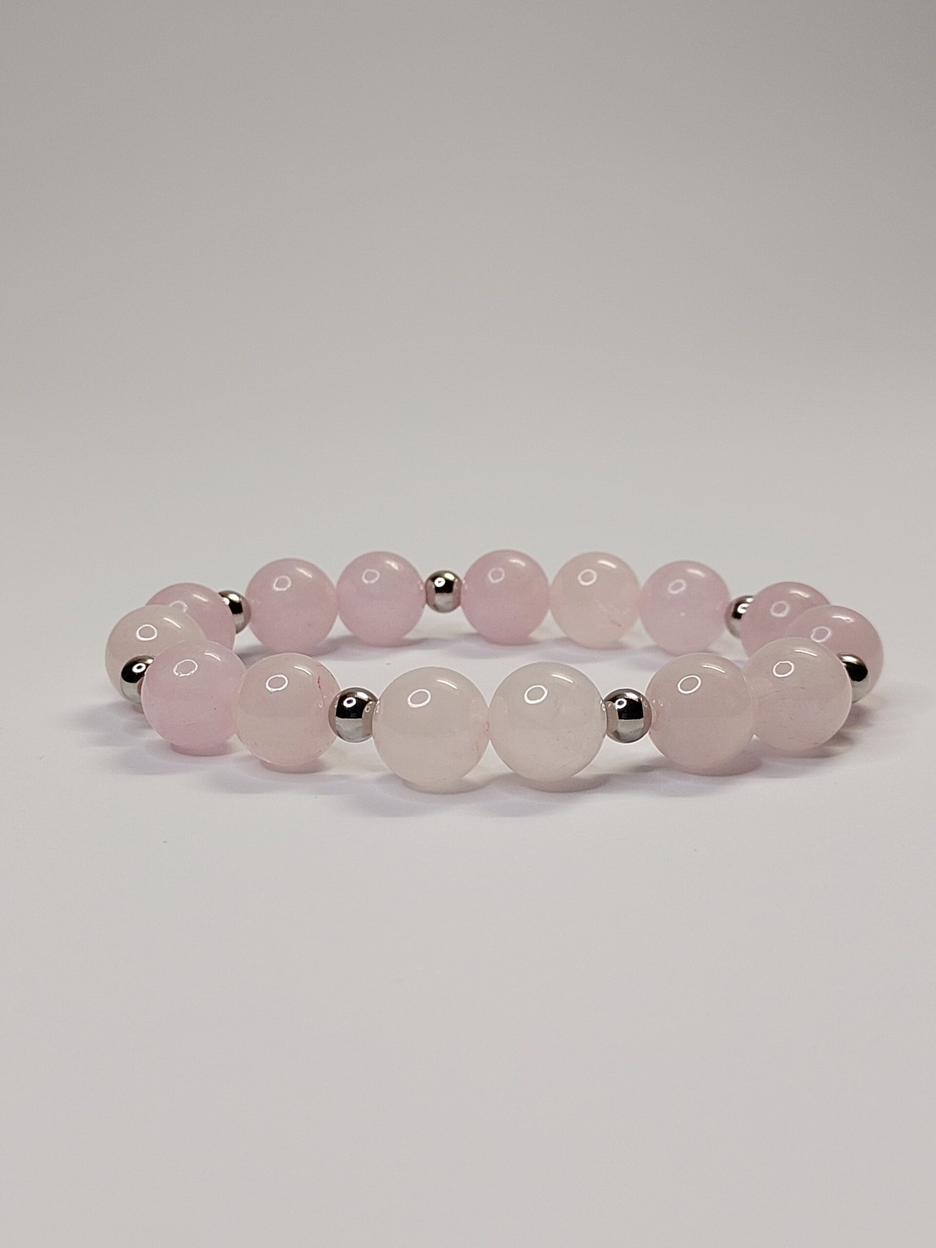 Браслет зроблений з намистин натурального каміння рожевий кварц.
