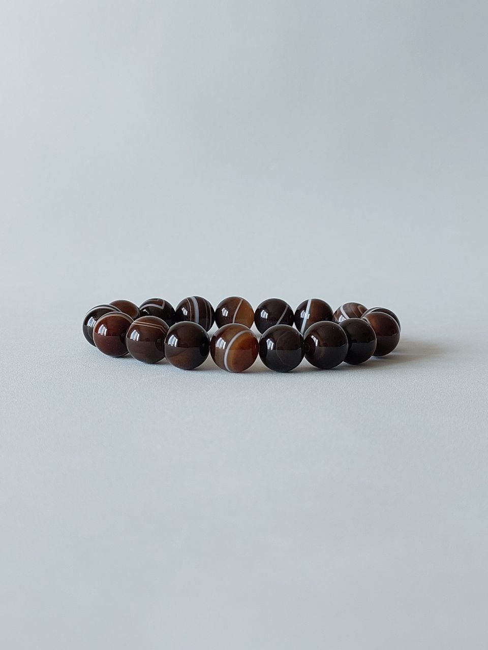 Браслет смугастого агату, зроблений з намистин натурального каміння. Діаметр намистин 10 мм. Намистини браслета зібрані на еластичну нитку