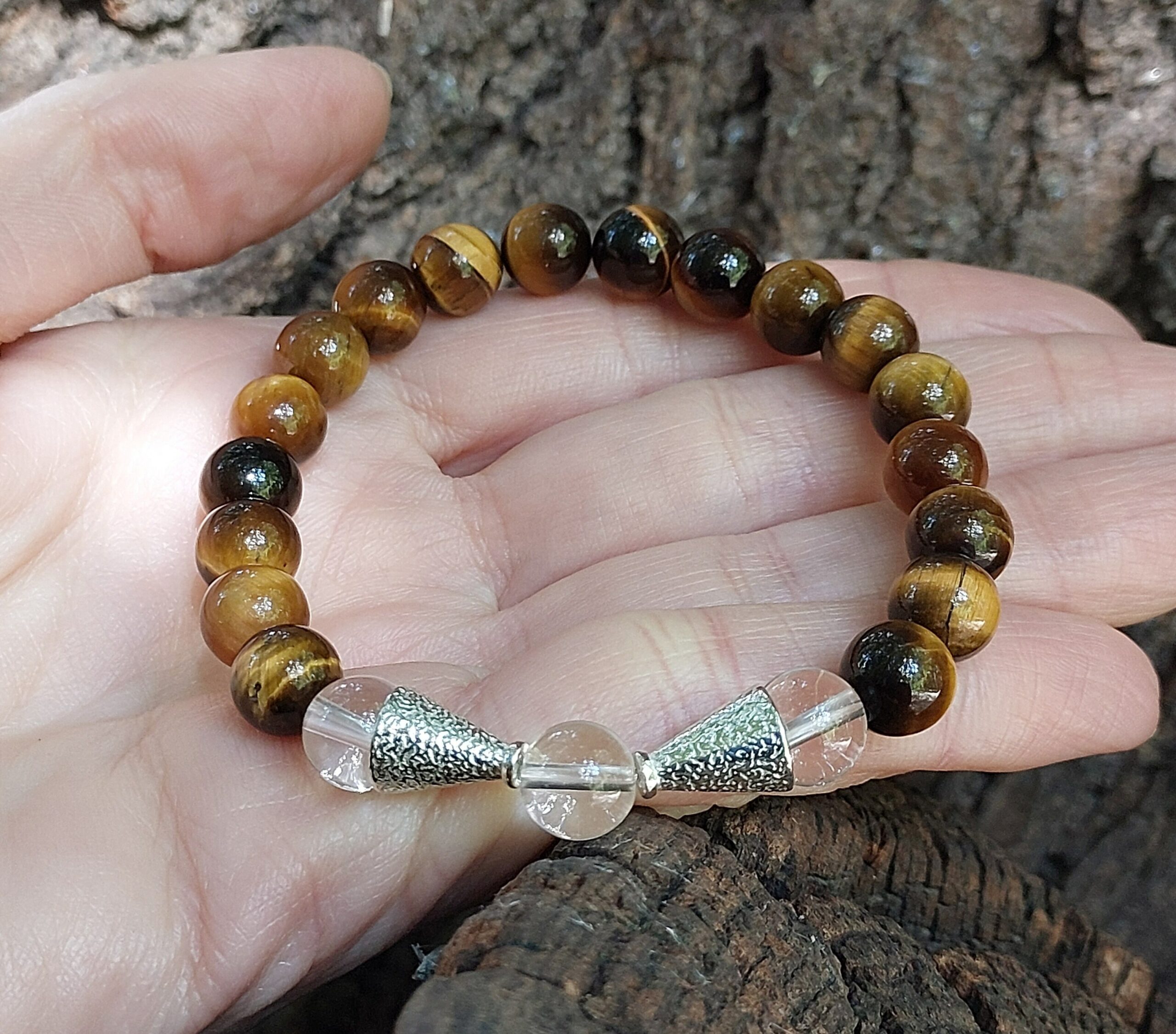 Браслет зроблений з намистин натурального Тигрового ока та Гірського Кришталю.