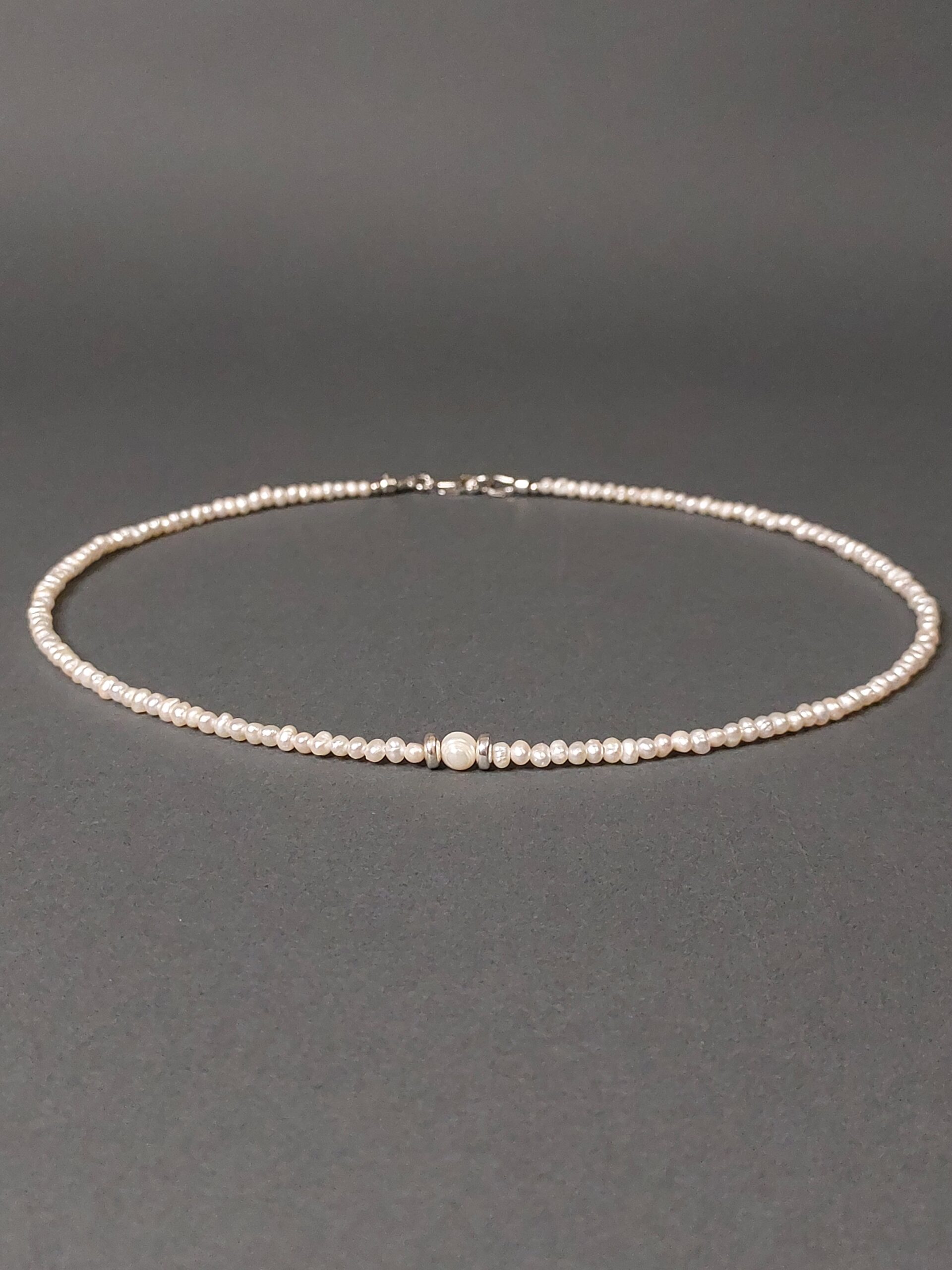 Чокер з Перлин та Гематиту, зроблений з натуральних намистин.