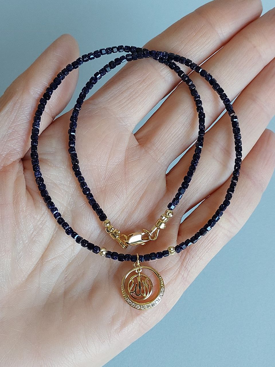 Чокер з синього авантюрину, зроблено з натуральних намистин.