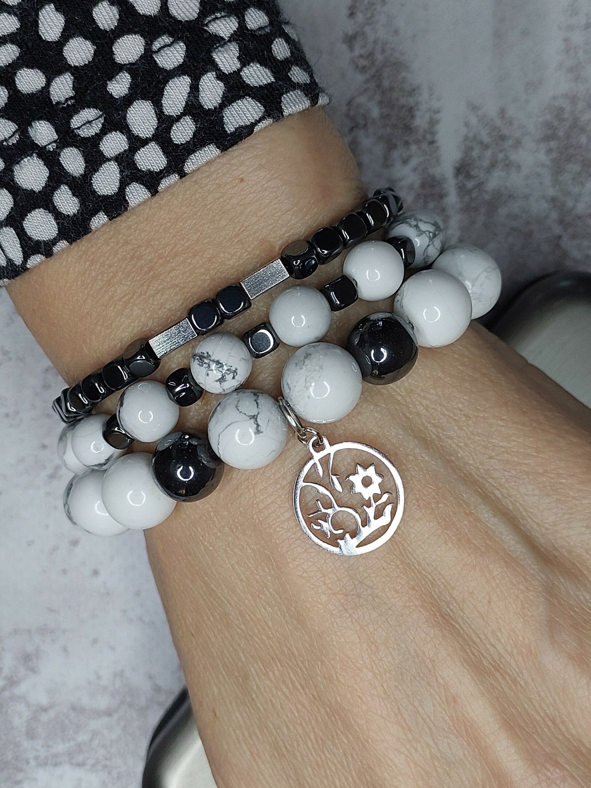 Сет браслетів з кахолонгу та гематиту “Кам’яне дерево”