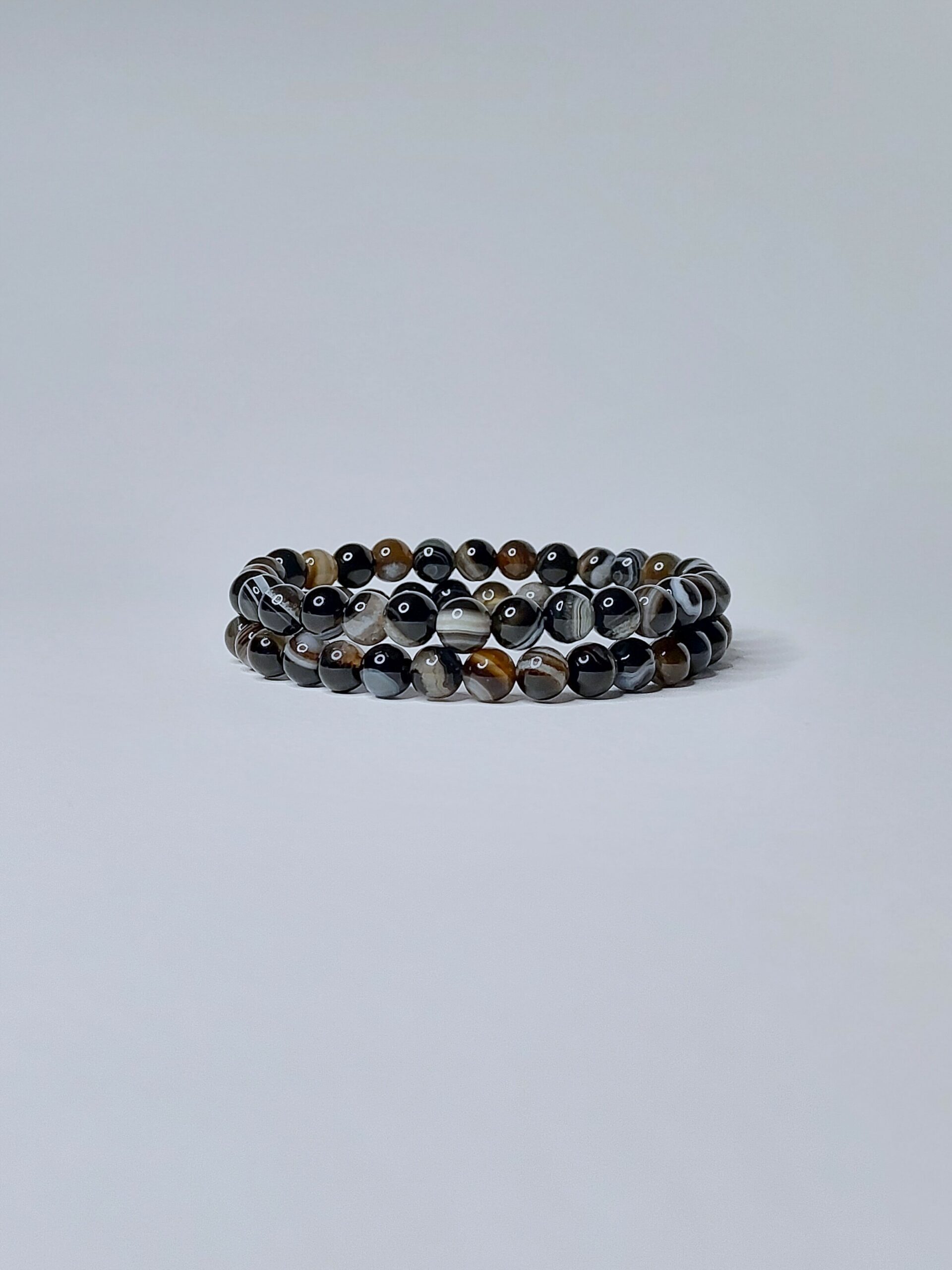 Сет браслетів з смугастого агату. Два браслета зроблені з намистин натурального каміння. Діаметр смугастого агату 6 мм.